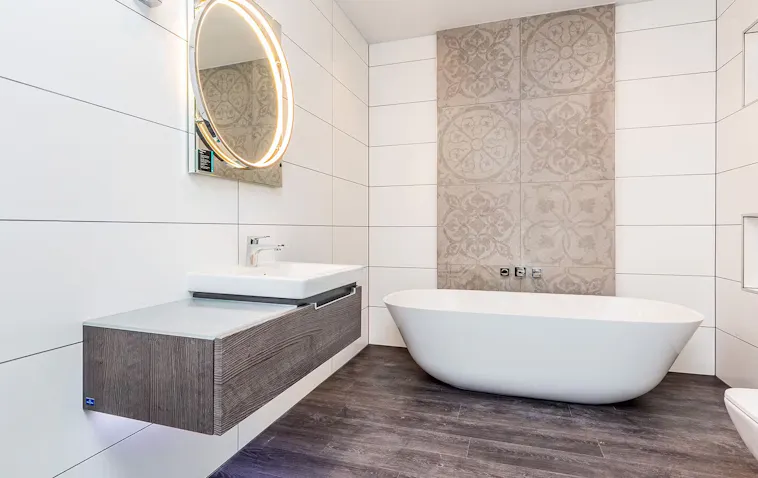 For this ultra-high-spec project we designed and crafted made-to-measure Trem H internal doors, paying careful attention to stylistic continuity by using black ash wood. The door’s dark tones suit the internal colour schemes which surround them, while a defined horizontal grain works perfectly with the sharp lines separating this development’s very contemporary open-plan spaces. As well as always getting the basics right, we’re firm believers in the devil being in the detail, so we used modern, clean-looking locks and handles to support these interiors’ overall sense of simple sophistication.