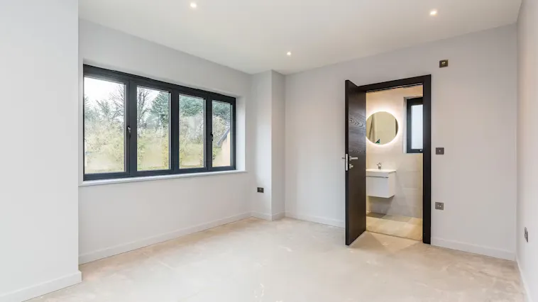 In stunning rural South Yorkshire, four luxury houses make up the prestigious Maplewood Place gated development: very much an exclusive community of homes, each one featuring an ultra-modern interior designed and made to the highest standards. In other words, just the kind of property our doors suit perfectly, which was exactly why our developer-client chose our proposal over those of the other suppliers he considered. Interiors here use a monochrome aesthetic to fantastic effect, so the client wanted a set of black bespoke internal doors to complement the homes’ bold, contrasty, light-and-dark colour scheme within.