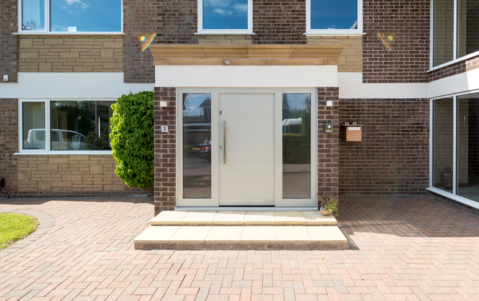A Pianura 2 front door is an inviting white on the outside and walnut on the reverse, and features generous side laterals to allow in plenty of natural daylight. Moving deeper into the property, an impressive Trem Glass double door makes the most of this light, allowing in copious amounts right to the heart of the building.
