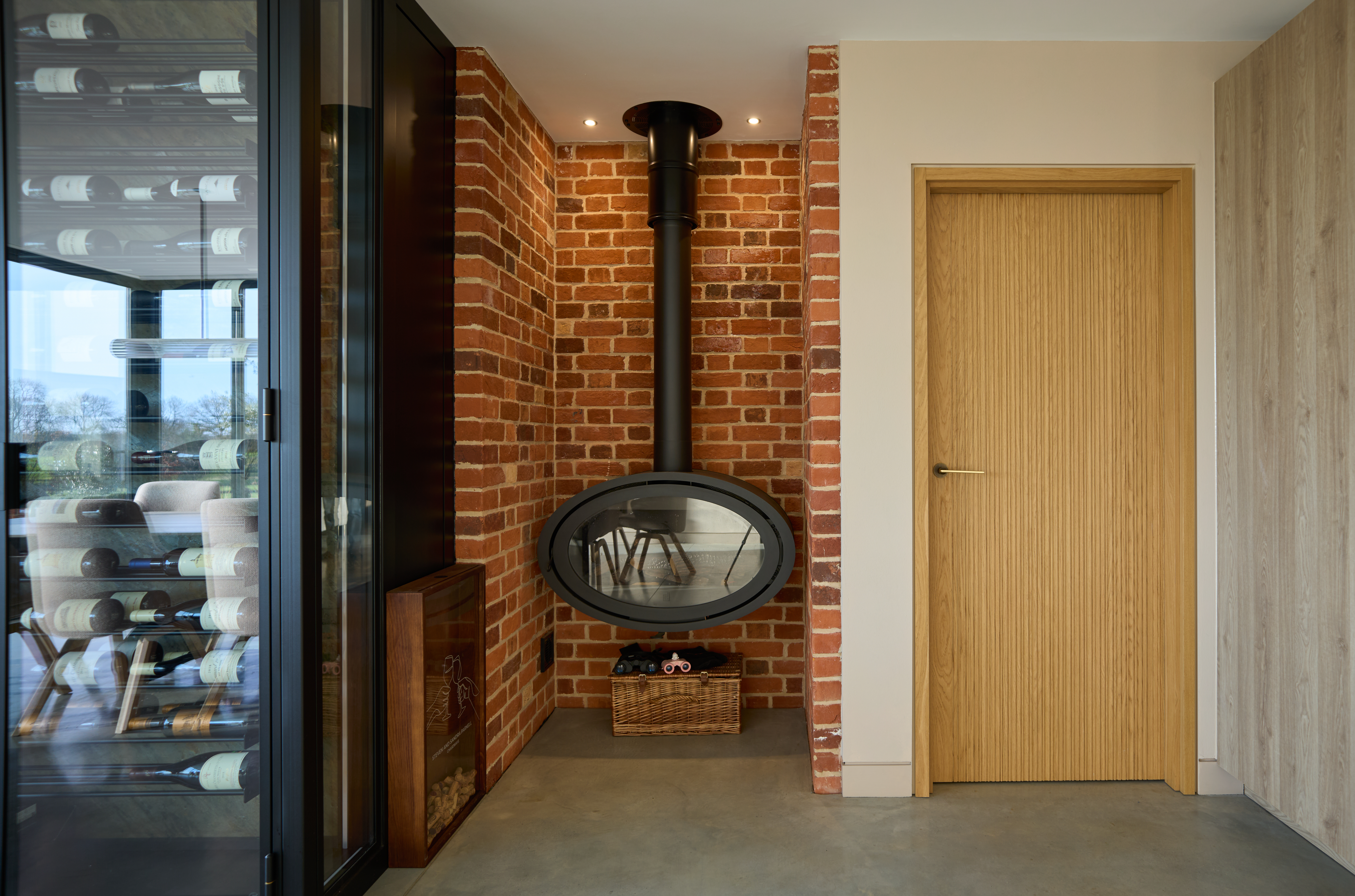 Working closely with the client, we were able to create fully bespoke doors, each featuring grooves with exactly the required dimensions in terms of length, width, depth and spacing. The finish is a warm and characterful natural oak – appealing enough in its own right, but also a fine background against which the grooves and their shadows add extra visual charm and interest. Each door sports a beautiful Mandelli Grint handle in matte bronze – every bit as wonderful to look at as it is to the touch.